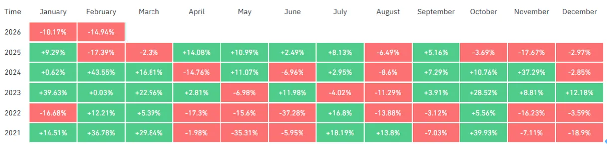 The crypto market recorded its fifth consecutive monthly decline in February, as risk asset sell-offs triggered by Trump's proposed tariff plan, amplified by tech stock corrections, concentrated contract liquidations, and escalating geopolitical tensions, weighed heavily on sentiment.