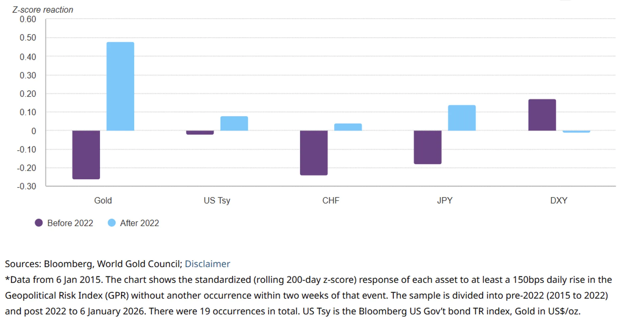 從戰略角度看,全球增長與政策方向持續的不確定性,將在 2026 年為金價提供支撐,並保留進一步上行的可能。黃金正日益成為各國央行及主權機構偏好的地緣政治對沖工具,尤其在地緣衝突、制裁以及儲備凍結風險上升之際(圖4)。俄烏衝突走勢、伊朗局勢、美國對委內瑞拉政策,以及圍繞格陵蘭等戰略地區的地緣政治焦點,迄今仍缺乏清晰的解決框架。任何事態升級都可能迅速加劇對能源及主權安全的擔憂,從而推高黃金的地緣政治風險溢價。